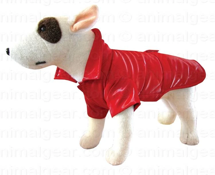 Hondenregenjas RainCoat New York Red Een opvallende rode hondenregenjas in een lak look, die goed geschikt is voor de honden die er niet van houden om nat te worden. Het jasje is voorzien van een klittenbandsluiting op de borst. Bepaal de juiste maat voor uw hond: meten is weten in verschillende maten leverbaar. Maat Borstomvang Ruglengte M 36 – 42 cm 29 cm L 43 – 48 cm 32 cm