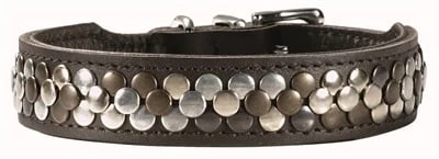 Hondenhalsband Arizona Bruin De Arizona hondenhalsband van Hunter is een populair product. Geen wonder, wat het leer is door een speciaal proces geverfd en geolied zodat het bijzonder soepel en veerkrachtig is. De halsband is opvallend versierd met studs in verschillende kleuren, van wit naar zwart, waardoor de halsband er ingetogen en fraai uitziet. Zoals altijd biedt Hunter een superkwaliteit aan, zodat u vele jaren plezier zult beleven aan deze hondenhalsband. De halsband is gemaakt van soepel bruin rundleer en is gevoerd met zacht leer. Leverbaar in de volgende maten: Bepaal de juiste maat voor uw hond: