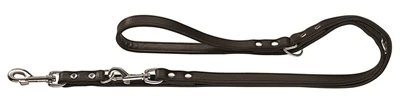 Verstelbare Hondenriem Basic Zwart Een sterke en soepele leren hondenriem, in een functioneel ontwerp met oog voor detail. De riem is gevoerd, zodat het handvat comfortabel in de hand ligt. De twee musketonhaken zijn gemaakt van nikkel. De hondenriem is drievoudig verstelbaar. Kleur: zwart. Leverbaar in twee maten: Maat Lengte Breedte 13/200 200 cm 13 mm 18/200 200 cm 18 mm