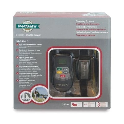 Nu kunt u zelf ervaren hoeveel beter het gaat als u een op afstand bedienbare trainer gebruikt. De PetSafe Deluxe hondentrainer met afstandsbediening ST-350-LD is een aangenaam hulpmiddel voor uw huisdier en is eenvoudig in het gebruik. Er zit een geavanceerd digitaal schermpje op die precies aangeeft hoeveel stimulatie u geeft. De afstandsbediening kan uw hond tot op wel 350 m onder controle houden zonder gebruik van een riem. Door het gebruik van de afstandsbediening krijgt u toegang tot 15 stimulatieniveaus die te zien zijn op een LCD digitaal schermpje. Hierdoor wordt een signaal uitgezonden naar de halsband van de hond. De hond ontvangt dan een vervelende doch veilige prikkeling en zal dan snel het verband leggen tussen zijn gedrag en uw training. Als u dit consequent volhoudt zal uw hond zich beter gaan gedragen. De afstandsbediening en de bijbehorende halsband zijn oplaadbaar. De trainingshalsband met afstandsbediening is bewezen veilig, comfortabel en waterbestendig te zijn en is effectief bij kleine hondenrassen van 3,6-18 kg. U kunt het systeem uitbreiden met een halsband voor een tweede hond.